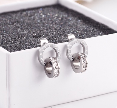 Bông tai titan la mã lồng khoen đá zircon màu trắng