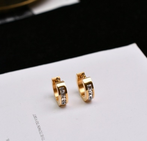 Bông tai titan khoen tròn đá vuông (vàng hồng)