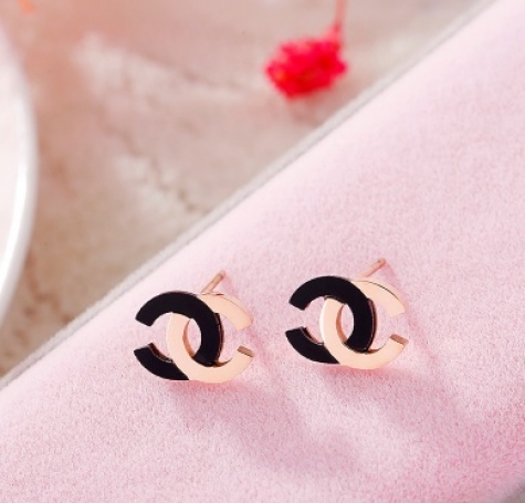 Bông tai titan chanel nhỏ vàng hồng phối đen