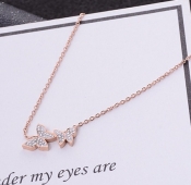 • Dây chuyền titan bướm đôi đính đá (vàng/vàng hồng)