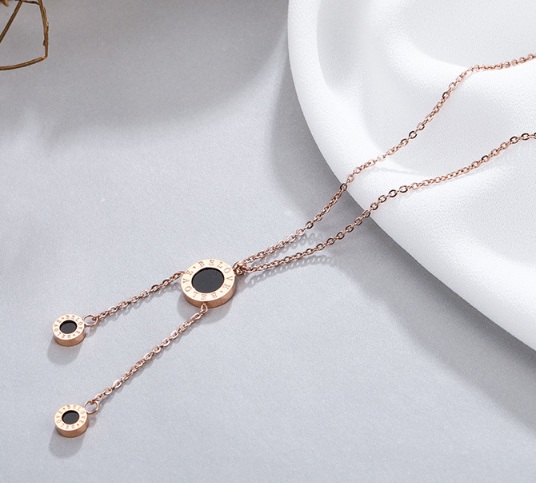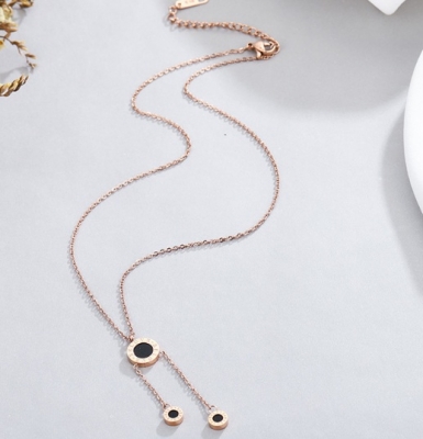 • Dây chuyền titan mặt đen 2 dây rớt (vàng hồng)