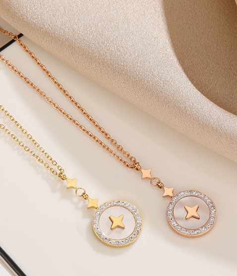 • Dây chuyền titan mặt tròn xà cừ viền xoàn