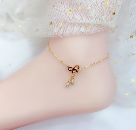 TT5123 - Lắc chân titan nơ hạt rơi (màu vàng)
