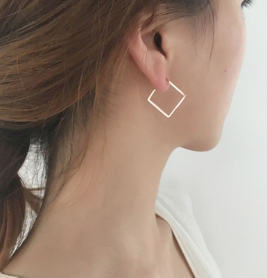 • TT2046 - Bông tai titan vuông hở (màu trắng/vàng hồng)